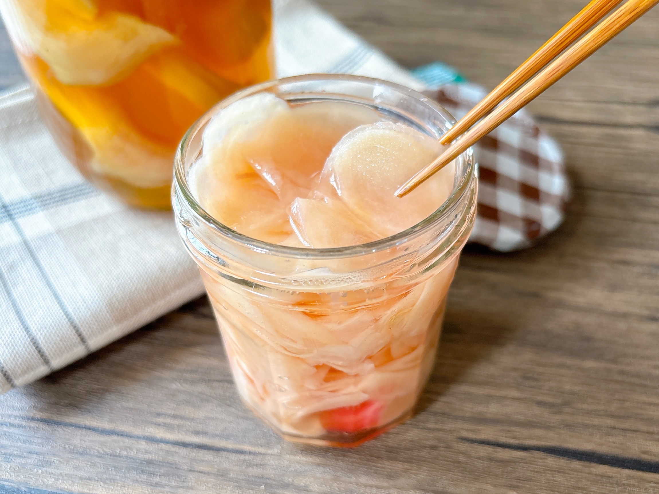合わせ酢を注いで蓋をします。冷蔵庫に入れてひと晩漬け込んだら完成です。