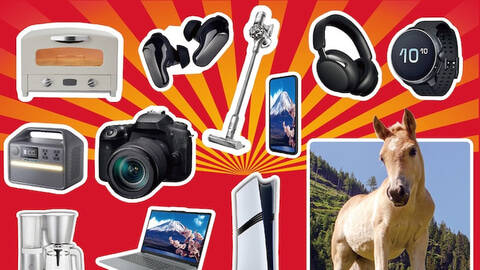 商品ページには、タブレットやヘッドホンといった小型家電が大量に掲載された画像が。どうやらこの中からランダムで5点入っているらしい。