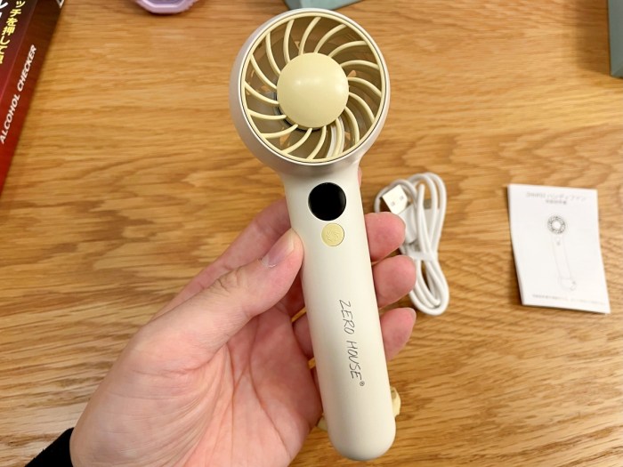 比較的マシなのは、こちらの充電式ハンディファンと……