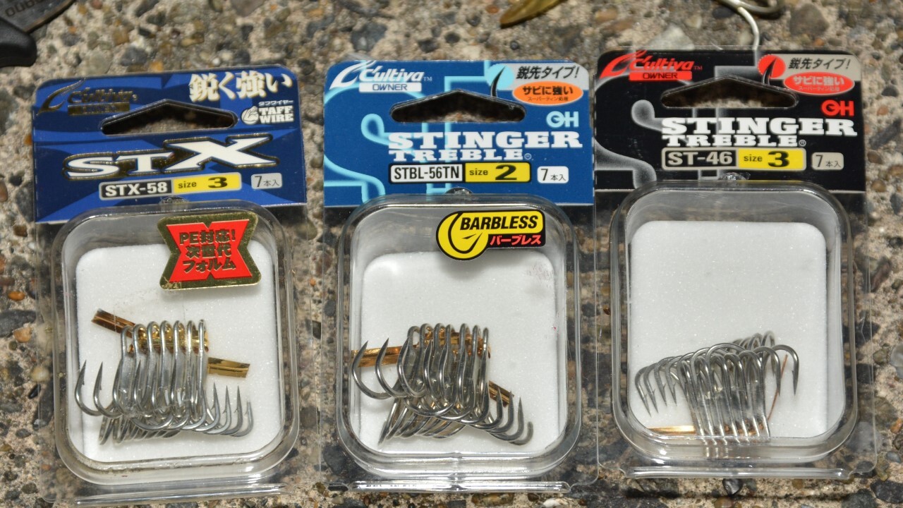マイペースに楽しむ武浪さんもフックだけは妥協しない。「フックがしっかりしていないと釣りという遊びとして成立しませんから」と話す。極力錆びずに長持ちしてくれてハリ先が鈍りにくいという基準でオーナーばりの「STX-58」「スティンガートレブルSTBL-56」「同ST-46」などを愛用。小糸川の81cm はロング16AとST-46#3でキャッチ。宍道湖で人生初の90cm オーバーをキャッチしたときはスーパーマグナムザラスプークにST-36BC#2/0 だった