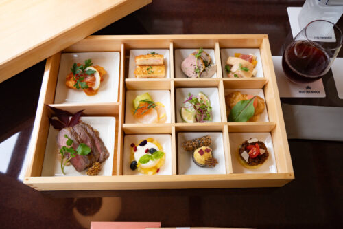 ボックスを開けると、11皿の料理が並び、「テイストオブ九州」のイベントということでどれも九州の食材を使用しています。