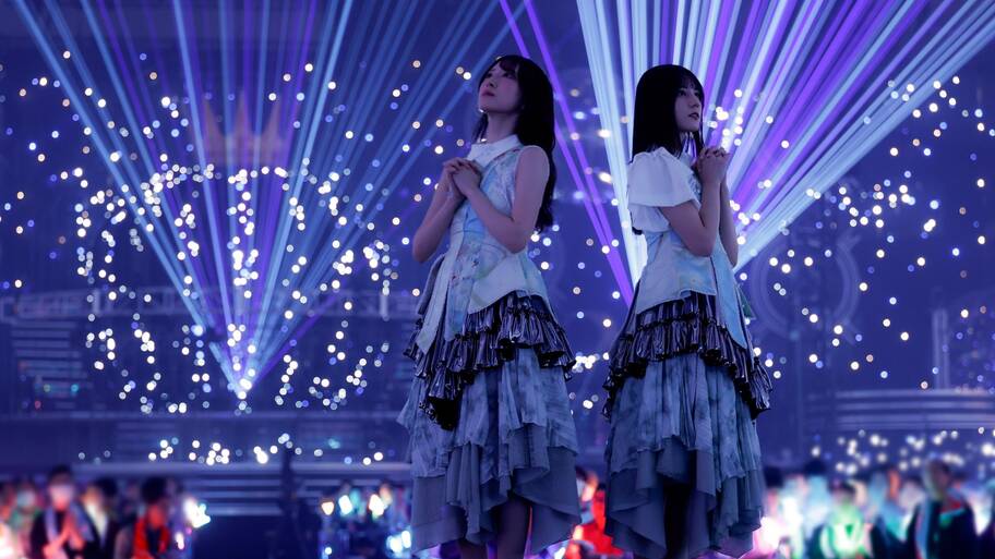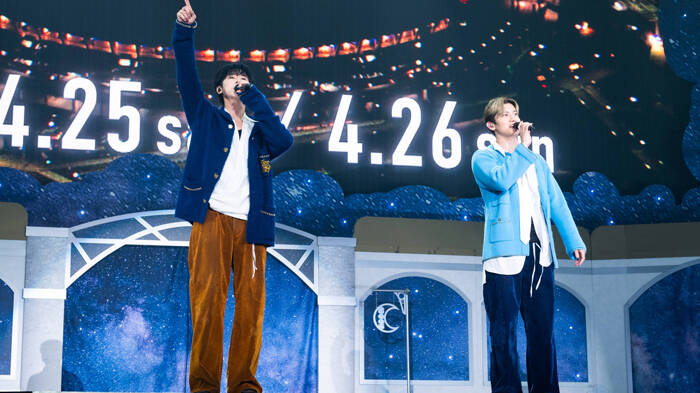 MCタイムで1人ずつ感想を述べていく中、海沼は「ペンライトが綺麗。本当にありがとうございます」と会場を見渡す。そんな海沼に「『綺麗だね』って言うお前のほうが綺麗で困ったな」と深堀が意味深発言。そんな匂わせの後、「皆さんにとってこの曲が大切な曲になりますように」という加納の曲振りで11月14日にリリースしたばかりの新曲「Winter Glow」がスタートする。階段に座ってメンバーが歌い上げていくと、会場は一気に冬の空気に包まれていった。