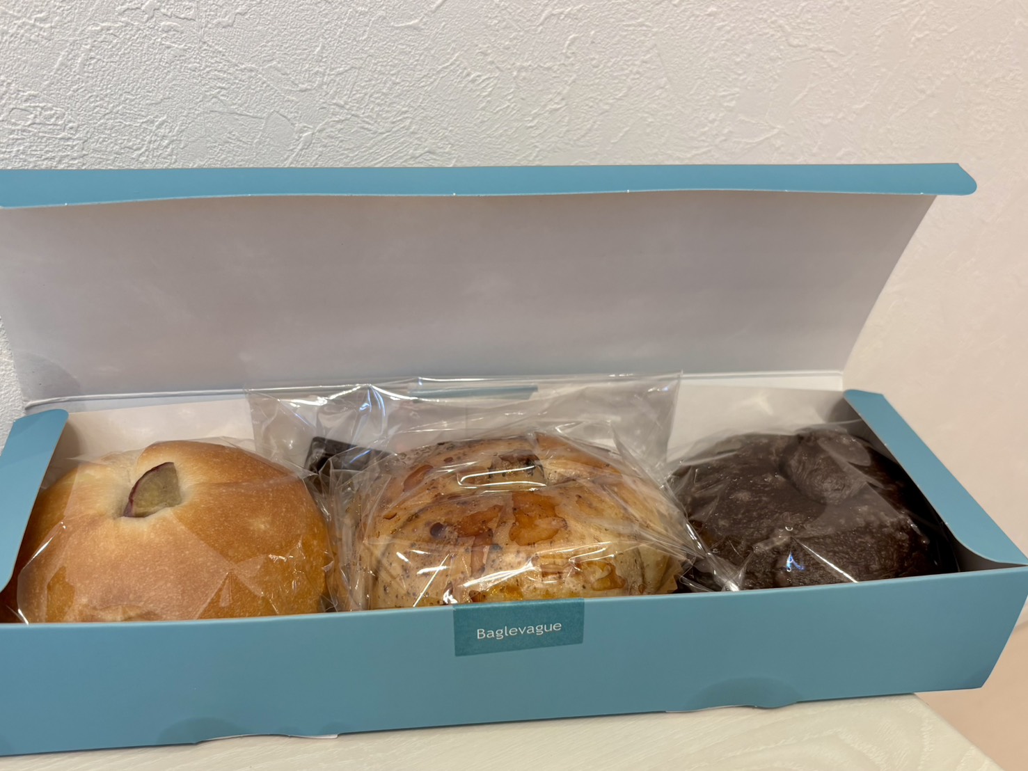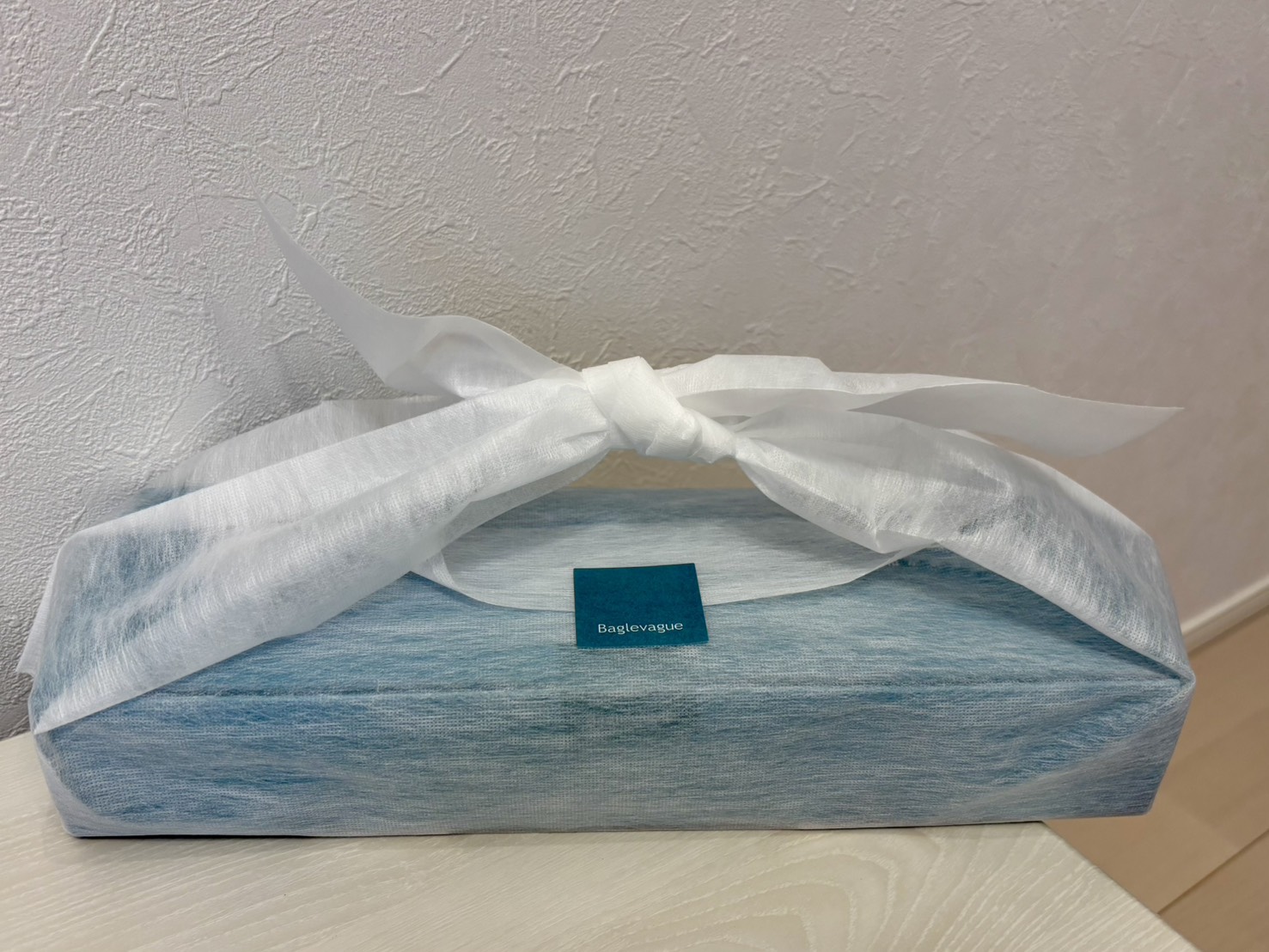 「Bagle vague」さんでは、追加で料金を払うと、写真のような贈答用箱セットを付けてくださいます(贈答用箱セット(3個入)176円 (税込))。