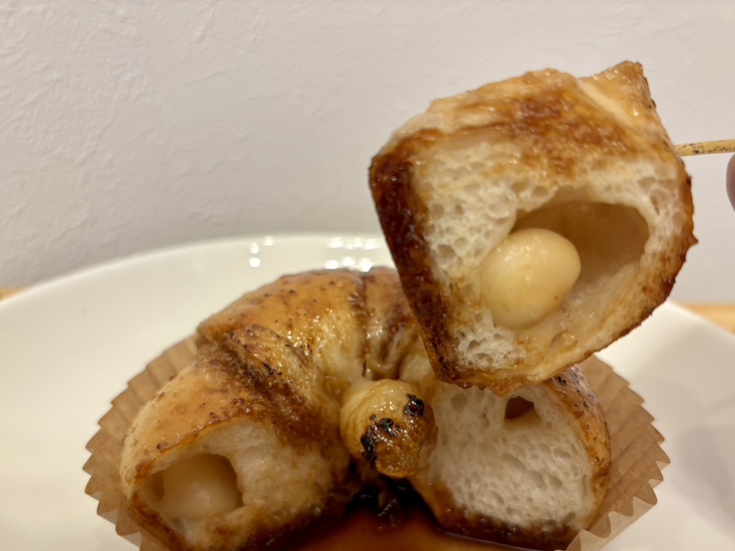さっそくいただこうとベーグルを持ち上げると、なんとベーグルの中には白玉が入っていました。