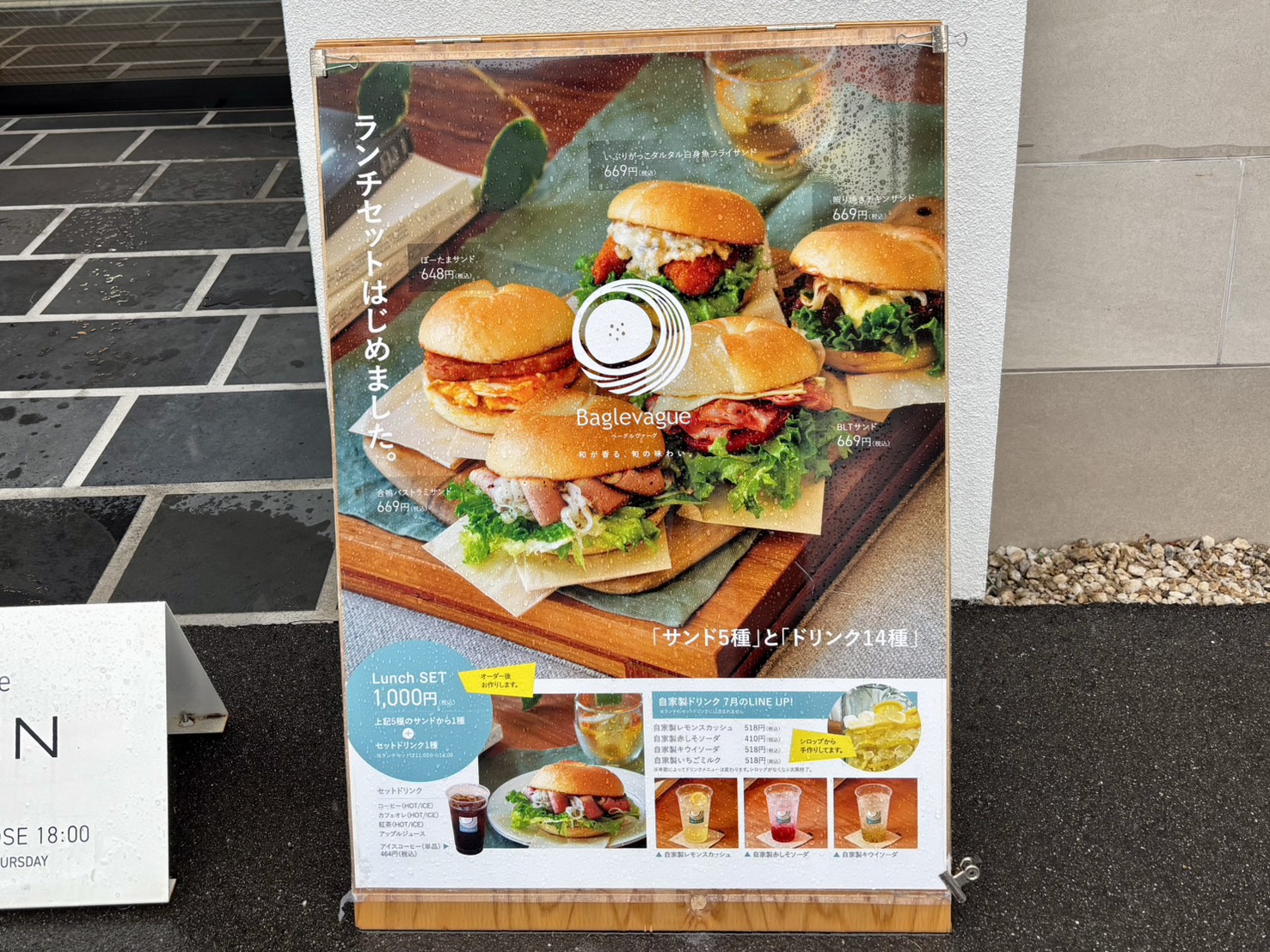 また、今回は時間が合わず注文できませんでしたが、「Bagle vague」さんでは、11〜14時の間、数量限定でランチセットが楽しめるのだそう。