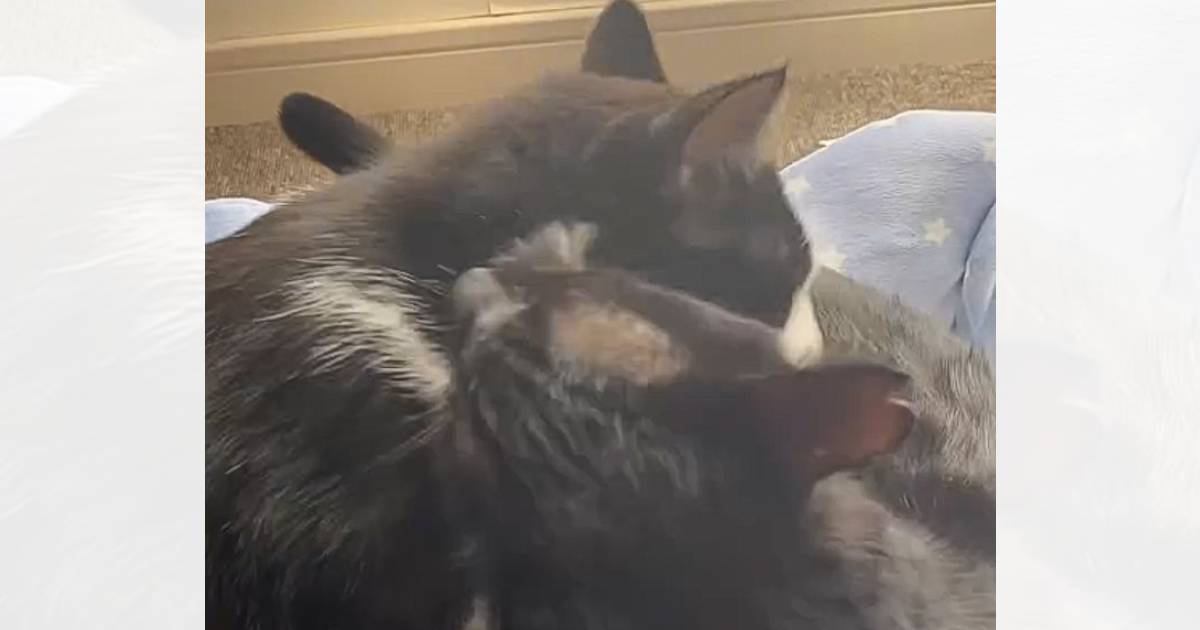 グルーミングをし合う2匹の猫を見ていたら…微笑ましすぎる展開に「ニンマリしてしまった」「何度も見てしまう」「可愛くてうるっときた」の声