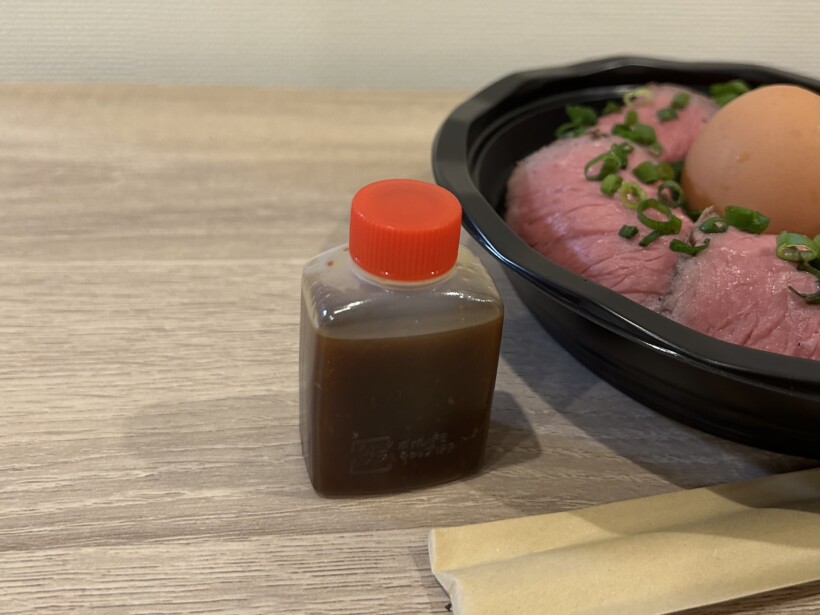 ガーリックオニオンソースは、パンチのある味わいでローストビーフともご飯とも相性抜群。