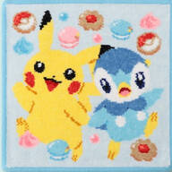 ピカチュウとポッチャマがスウィーツに囲まれたデザイン。見る人を笑顔にするハンカチです。