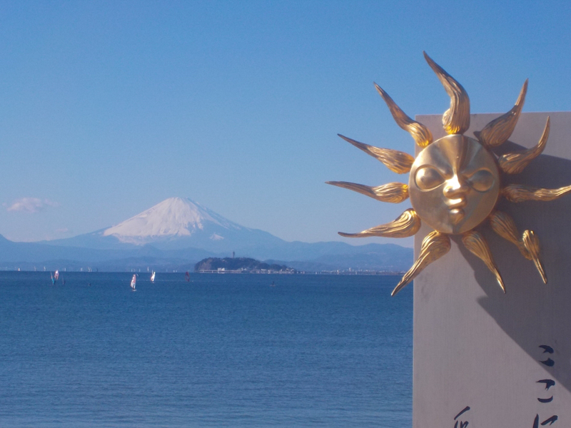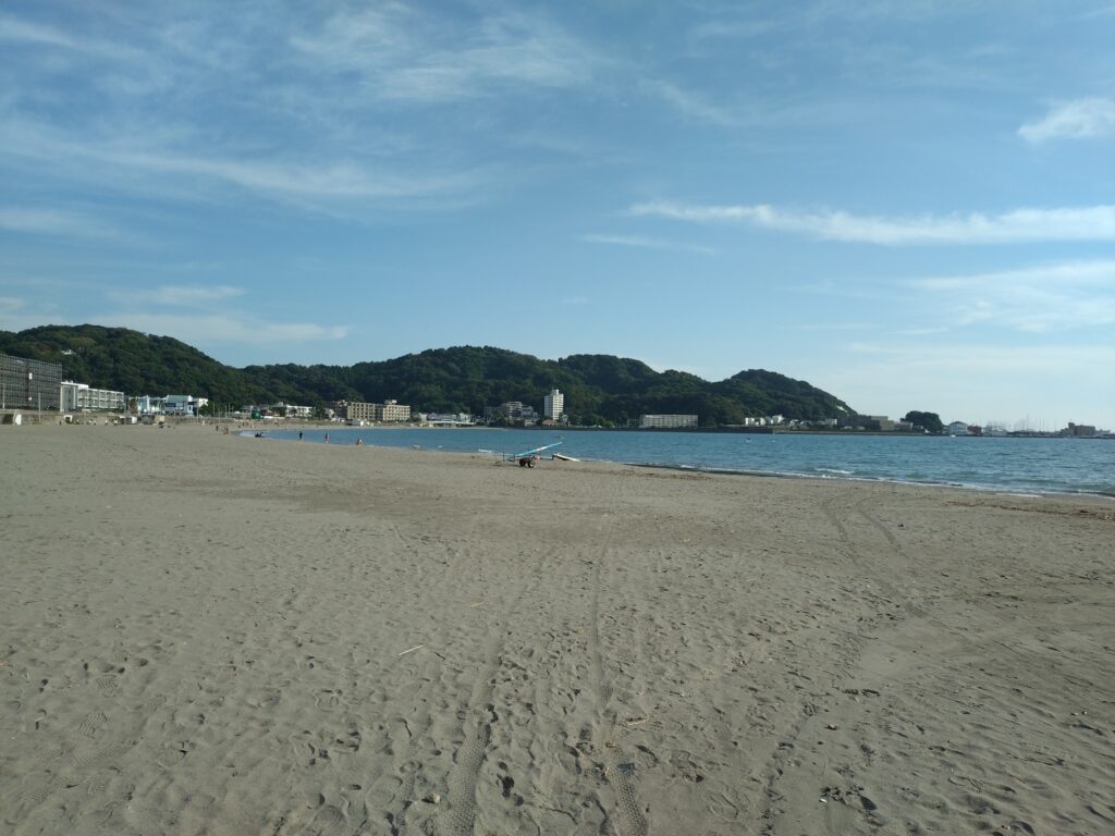 閑散期は地元の人たちの憩いの場として定番のお散歩コースとなっており、雲が少ない日は江の島と富士山が重なってキレイに眺めることができます。ただ実際の砂浜は800mぐらいしかなく、近隣の海岸に比べるとかなりスケールが小さめで、ハーフマイルビーチという別名もあるぐらいです。