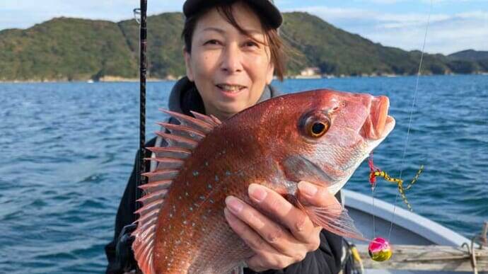 このポイントはキントキが多く、全員にアタリがあり、いい人は3尾。皮は硬いが、刺し身で食べると最高といわれるくらいなので、うれしいゲストだ。