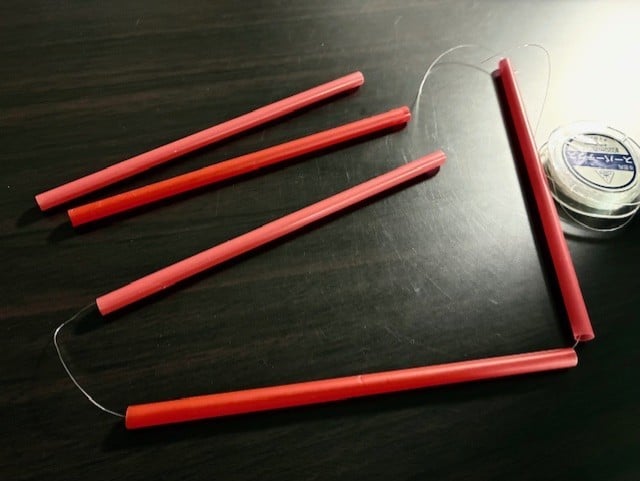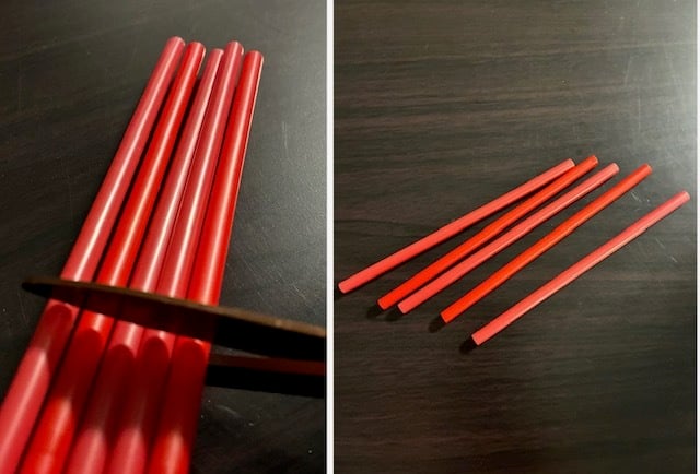 1.ストローを5本とも、同じ長さに切り揃えます。