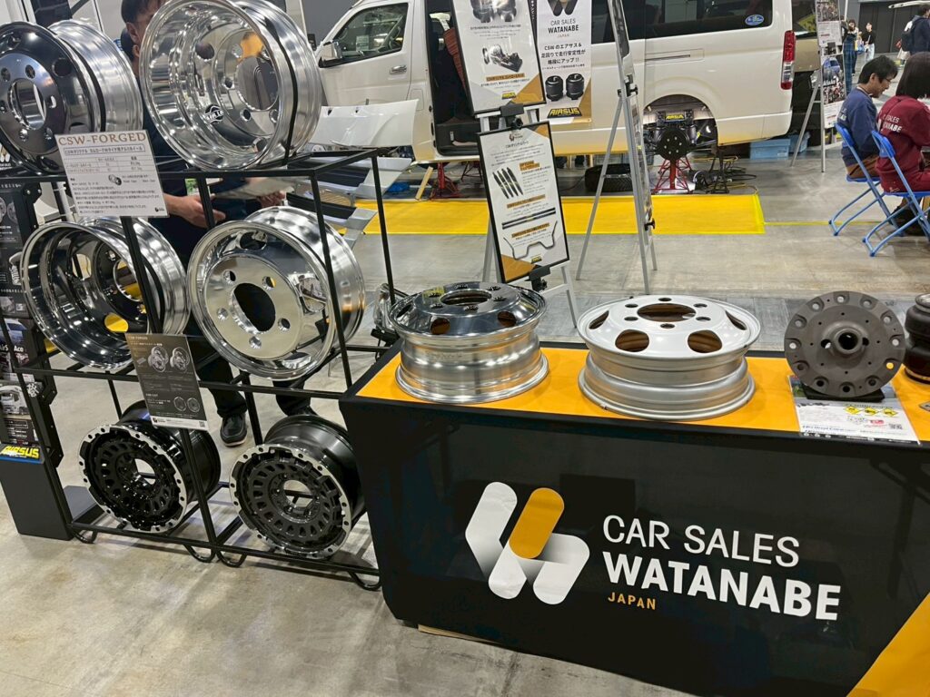 存在感抜群の鍛造ホイールが並んだのは「カーセールスワタナベ」ブース。