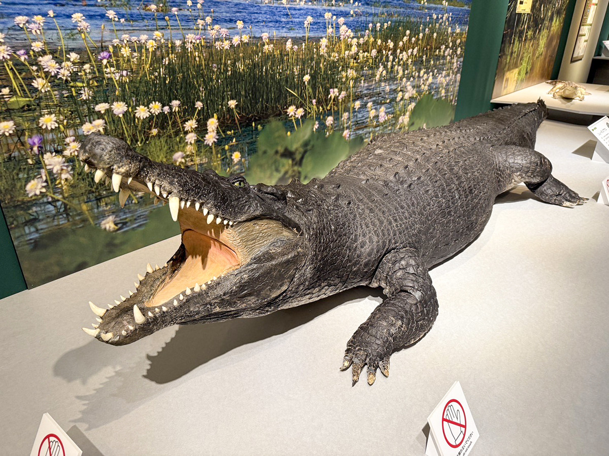 現生ワニの剥製や骨格標本、映像資料などを用いて、その形態や生態、進化の道のりを示すとともに、世界に生息する27種のワニの多様性を紹介。初公開となる標本も展示され、研究者による調査活動や標本保存の取り組みを紹介するコーナーも設けられる。