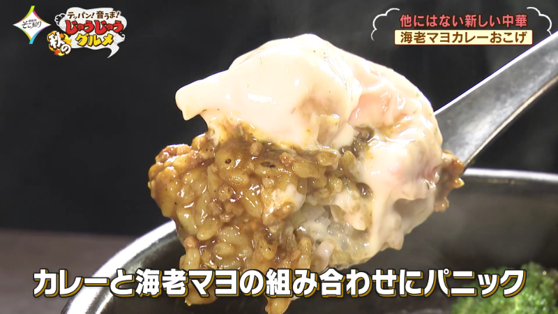 そんな華花のじゅうじゅうグルメは中華の定番じゅうじゅうグルメのおこげ…ですが、合わせたのは、なんとカレーと海老マヨ!これぞ、新・中華です。