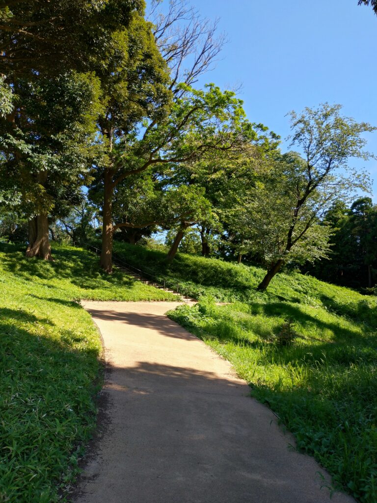 1号墳付近は歩道が舗装されていて、また階段やベンチもあることで過ごしやすいです!