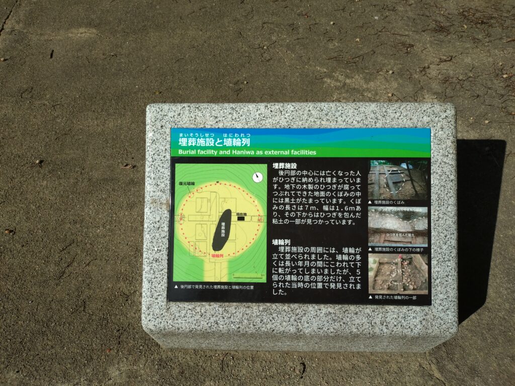 出土した埴輪、また地下に埋まっている埋葬施設についても、このような説明書きがなされています。