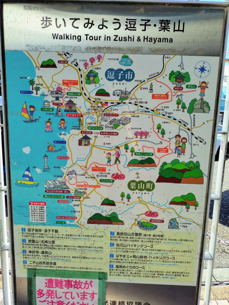 逗子市が策定しているモデルコースは全長5.5km、1時間40分ほどで往復できる程度と気軽にハイキングを楽しめます。
