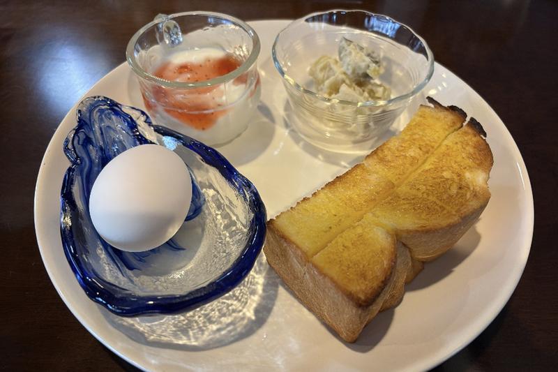 バターがじゅわっと染みた厚切りトーストに、ゆでたまごとヨーグルトがセットになった『モーニングプレート』!気まぐれで1品サービスが付くこともあり、出会えた日はうれしいサプライズ~!
