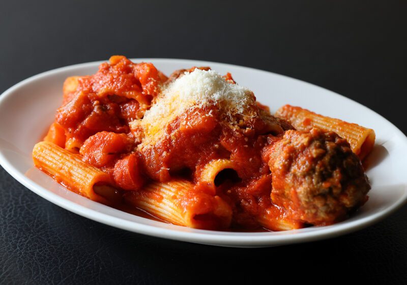 そんな料理を食べながら、その料理が作り継がれているイタリアの地方や、食材やその作り手の話を聞くのが楽しくて、ワインが進む。ちなみに、「鶏とタマゴのカルピオーネ」はピエモンテの料理で、マリネされた鶏の胸肉はしっとり柔らかい。また、「肉団子のパスタ」は、宗像の放牧場で育てているタロ豚の大きな肉団子がわんぱくな一皿だ。
