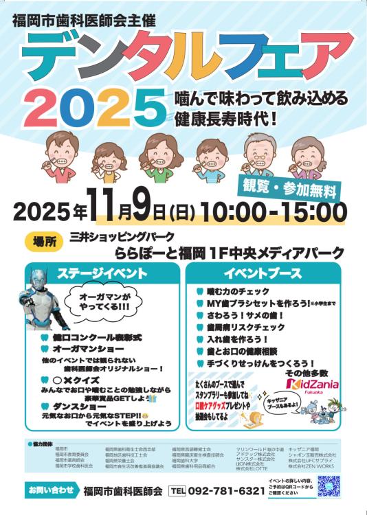 11月8日「いい歯の日」にちなんで、福岡市歯科医師会が主催する年に一度のビッグイベント『デンタルフェア2025』が、2025年11月9日(日)「ららぽーと福岡」にて今年も開催されます。