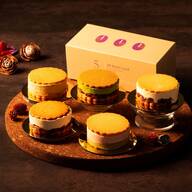 <中段>上段左側から時計回りに、ソリをイメージした「チョコレートモンブラン」、アールグレイとオレンジクリームが調和する「紅茶のカヌレ」、「ドバイチョコ」、洋梨とチョコレートの「米粉パウンドケーキ」、「リース風クッキー」