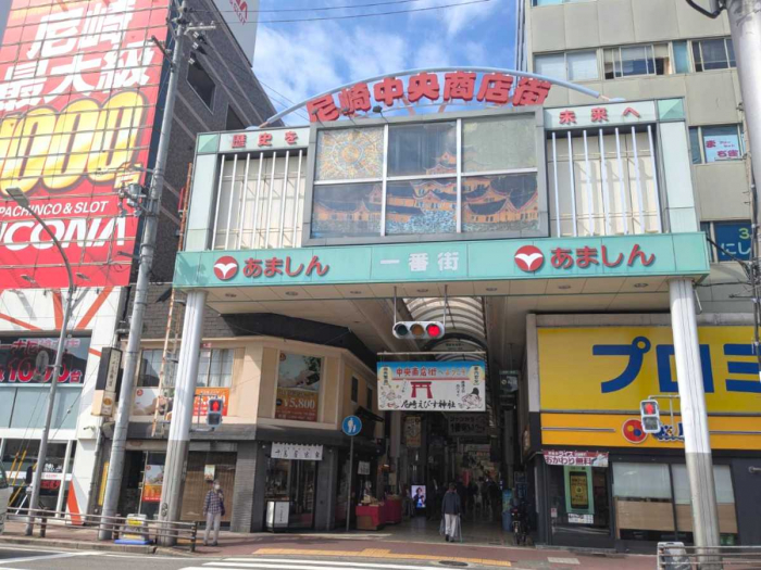 商店街は阪神尼崎駅前の『中央公園』を抜けてすぐという好立地。駅近なので仕事帰りに立ち寄ったりしやすいですね。