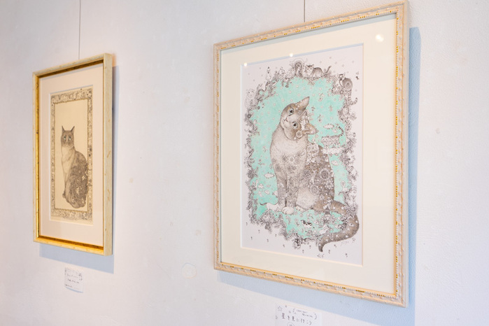 極細ペンで驚くほど細密に描かれる個性豊かな猫たち。