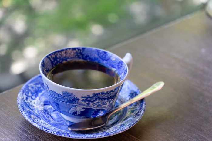 イギリスの老舗陶磁器メーカー「スポード」のクラシカルなカップ&ソーサーで提供され、気品ある佇まいもまるでアートのよう。