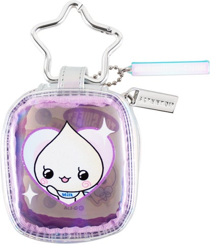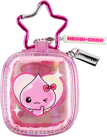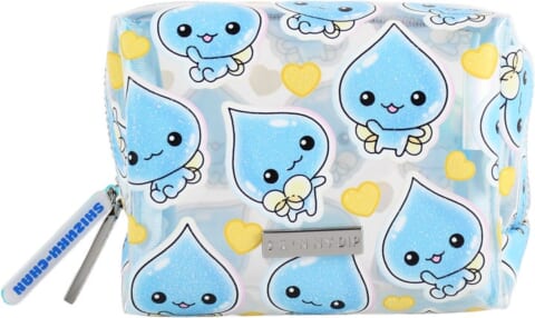 しずくちゃん達がグリッター加工でデザインされたポーチ。マチがしっかりとあるため、モバイルアクセサリーやコスメなどを収納できる持ち歩きやすいサイズ感です。(サイズ目安:約 H8.5×W11×D7cm)