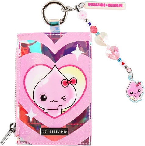 IDカードや交通カード入れとしても使えるカラビナ付きのケース。ステッカーのようにグリッターが加えられ、キラキラとしたデザインのため、バッグチャームとしても活用できます。