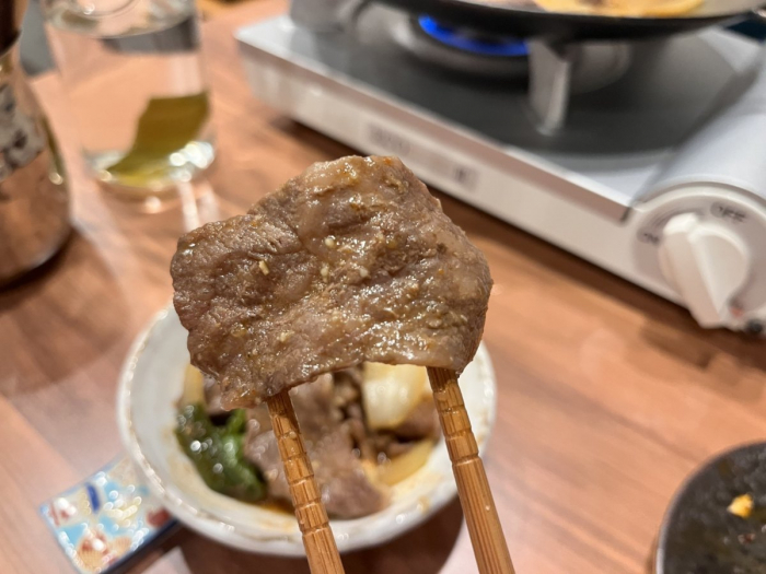 お肉はロースとミスジの2種類で、ロースはしっかりとした脂の甘みが特徴。一方ミスジは赤身の旨みが濃く、繊細で優しい余韻が楽しめます。どちらも柔らかく、噛むほどにじわっと旨みが広がっていきます。