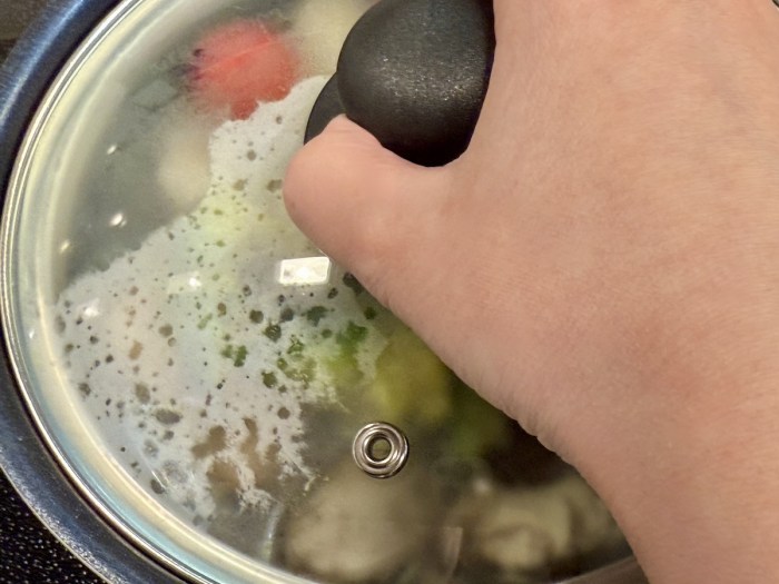 フタをして10分ほど蒸す! さあ、存分に狂うがよい!! 食材の下ごしらえに30分くらいかかったけど、作業としては本当に簡単だ。たぶん本場では気軽な料理なんだろう。