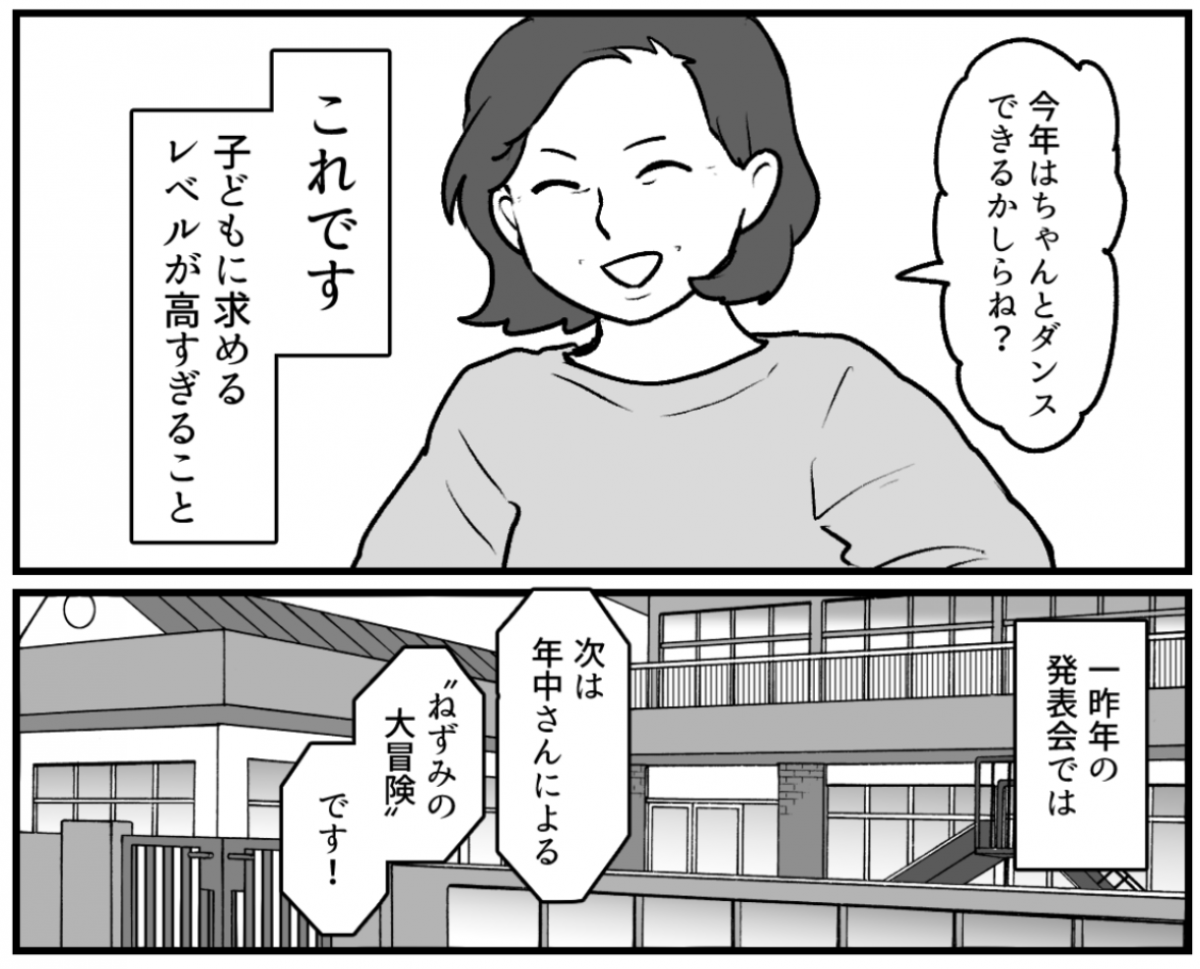 <義母は元保育士!>発表会で求めるレベル高すぎ?ありのままを褒めてほしいのにぃ~!【まんが】