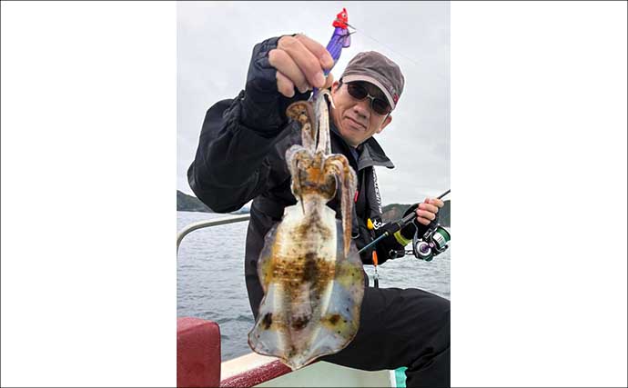 三重県・南伊勢町神津佐出船の名古丸では、11日にティップランでアオリイカがポツポツ上がり、サオ頭は6匹をゲット。10日のティップランではサオ頭はアオリイカ7匹を手中。