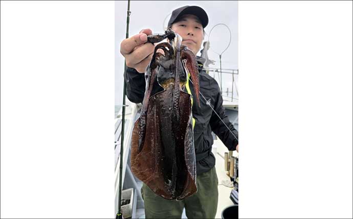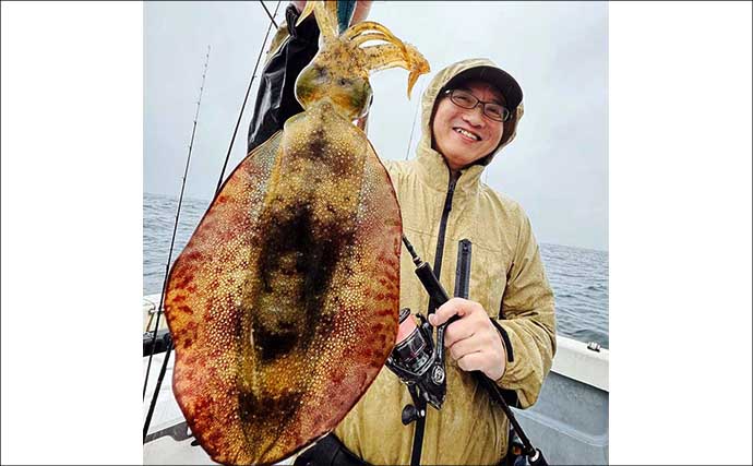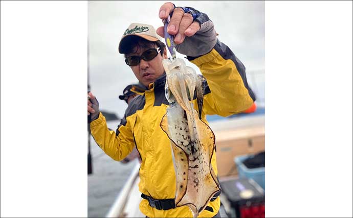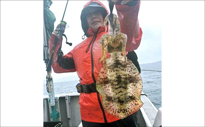 愛知県南知多町・片名漁港のブルードラゴンでは11日、アオリイカ狙い、ティップラン便で出船。初挑戦のアングラーも多かったが、クレイジーオーシャンサポートメンバー土井さんのおかげで、アオリイカを全員キャッチ。船中13匹でツ抜けも達成、さらにコウイカも4匹キャッチ。ゲーム性高く、食味も抜群の秋アオリイカが本格始動。