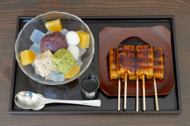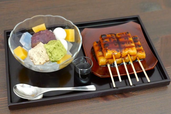甘じょっぱさがクセになる「みたらし団子」と「あんみつ」のセット