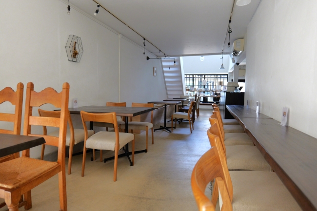 2024年6月にリニューアルした店内は、白を基調とした落ち着いた雰囲気。1階はカウンター6席とテーブル席、2階にはソファー席もありますよ。ベビーカーで入店も可能です◎