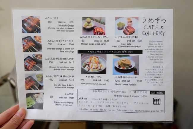 ホットケーキやパフェなど、和の要素も取り入れたカフェらしいメニューは『うめぞの CAFE & GALLERY』ならでは。ぜひここでしか味わえないメニューも試してみてくださいね。