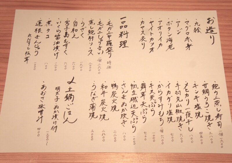 当初はおまかせコース1本から始め、9月中旬以降から5品からなるおまかせショートコース、また21時以降は一品料理も楽しめるようになっています(21時以前でも、コース注文の場合は一品料理の追加可)。ですが、初めて行くならお得なおまかせコースが断然おすすめです。