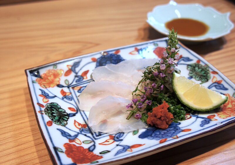 そして出てきたお造りは、この日はクエでした。クエはなかなか手が出せない高級魚なので、ちょうど巡り合えるなんてラッキーです。