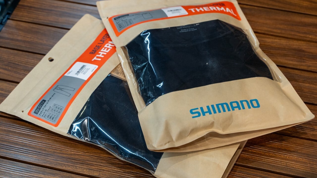 まず、一番下に身に着ける肌着(ベースレイヤー)は吸水速乾性にすぐれたものを選びます。シマノの『アクティブウォームアンダーシャツ』と同タイツは保温・吸湿・放湿性のあるメリノウール100%製で、汗冷えを防ぎつつ保温性も高いです。