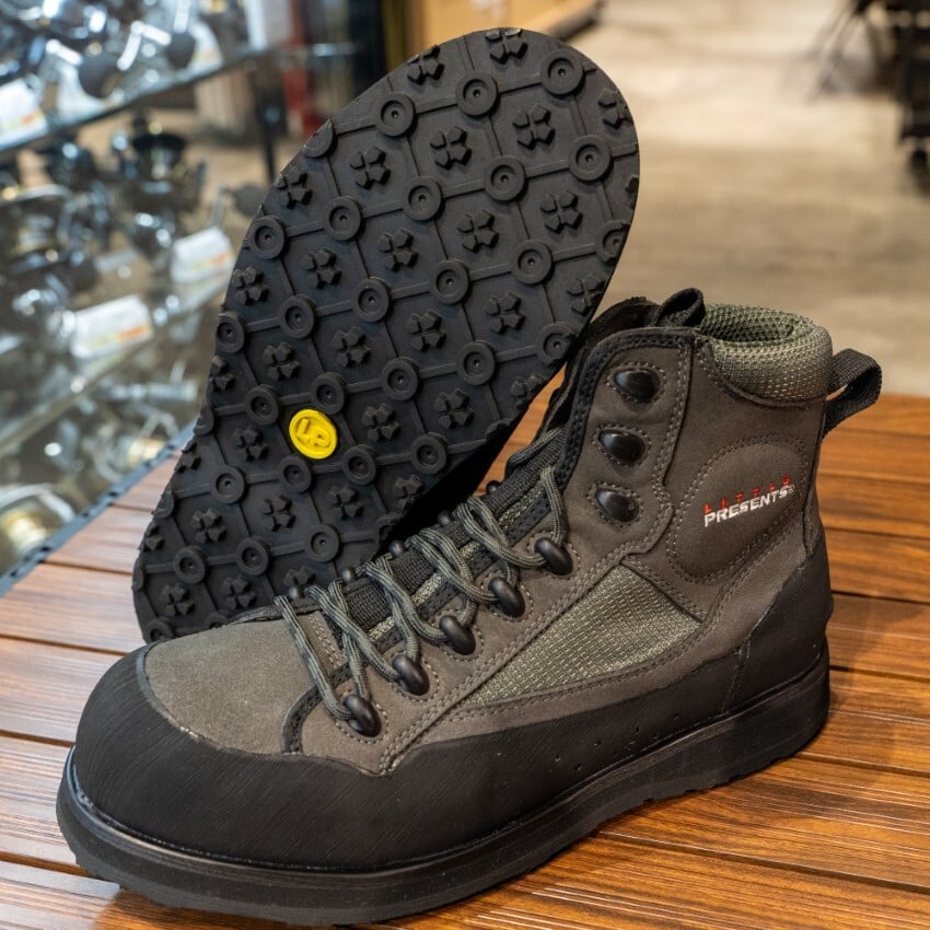 シューズはラバーソールのものがおすすめです。フェルトだと雪上を歩く際、靴底に雪が付着して積み重なり、歩きづらくなります。リトルプレゼンツの『ミッドストリームWDシューズIIラバーソール』は後付け可能なスタッド(鋲)が付属。必要に応じてねじ込めば、滑りやすい岩盤エリアなどにも対応可能です。