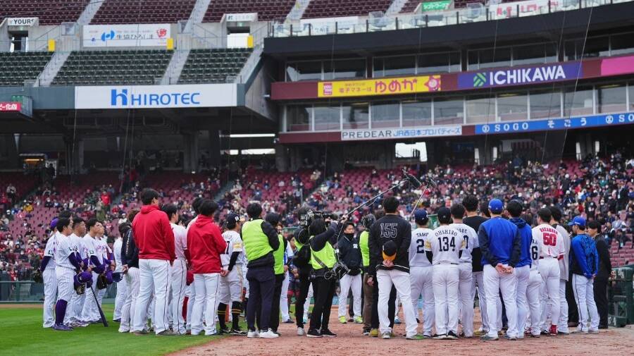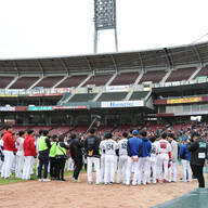 閉会式で、父母ら家族や一緒にプレーする仲間への感謝の気持ちを持つことの大切さを説いた2人。「プロ野球選手になりたい人!」との問いには複数の団員が手を挙げた。同地域からは30年ぐらいプロ野球選手が出ていない。東野さんは「震災があったことも忘れずに、誰よりも努力してプロ選手を目指してほしい」。大田さんは「プロ野球に憧れを持ってほしい。ドラフトにかかるような選手が1人でも多く輩出されることを願う」とし、野球選手の輩出がまち自体の活力を生むことも示した。