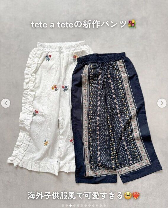 sarii.073さんがおすすめしているのは、「tete a tete(テータテート)」の花柄パンツ。どちらもSNSで「海外風デザインが可愛い!」と人気を集めています。透け感が気になりがちなホワイトのレースパンツは、ひざ上まで裏地があるため安心♪ 同系色で合わせたワントーンコーデや、派手色と合わせたメリハリコーデがおすすめです!バンダナ風デザインのパンツは、ブラウスやシャツと合わせると、今っぽコーデに仕上がりますよ◎