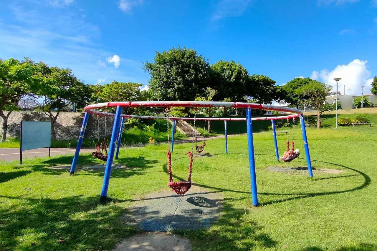 広くて充実した施設と緑豊かないこいの市民パークは、幅広い年齢層に人気の公園です。近くには老舗タコライス屋さん、コンビニ、ファストフード店、チキン屋さんなどもあるので公園利用の前後に立ち寄りやすいですね。お弁当を持参して、公園の緑を眺めながら食べるとリフレッシュできそうです♪