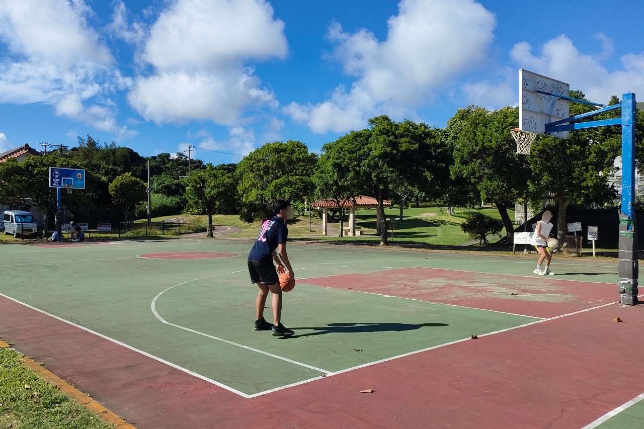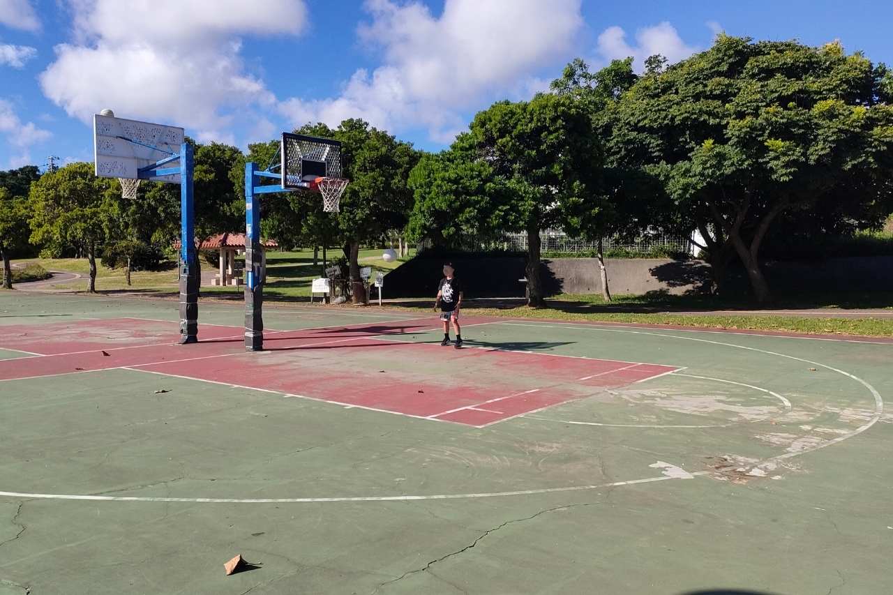 大人用コートは、広々としたオールコートです。バスケットの盛んな沖縄だけあって、暑い時間帯でもプレーする人がいました。日差しの落ち着く時間帯はさらに利用者でにぎわいそうです。