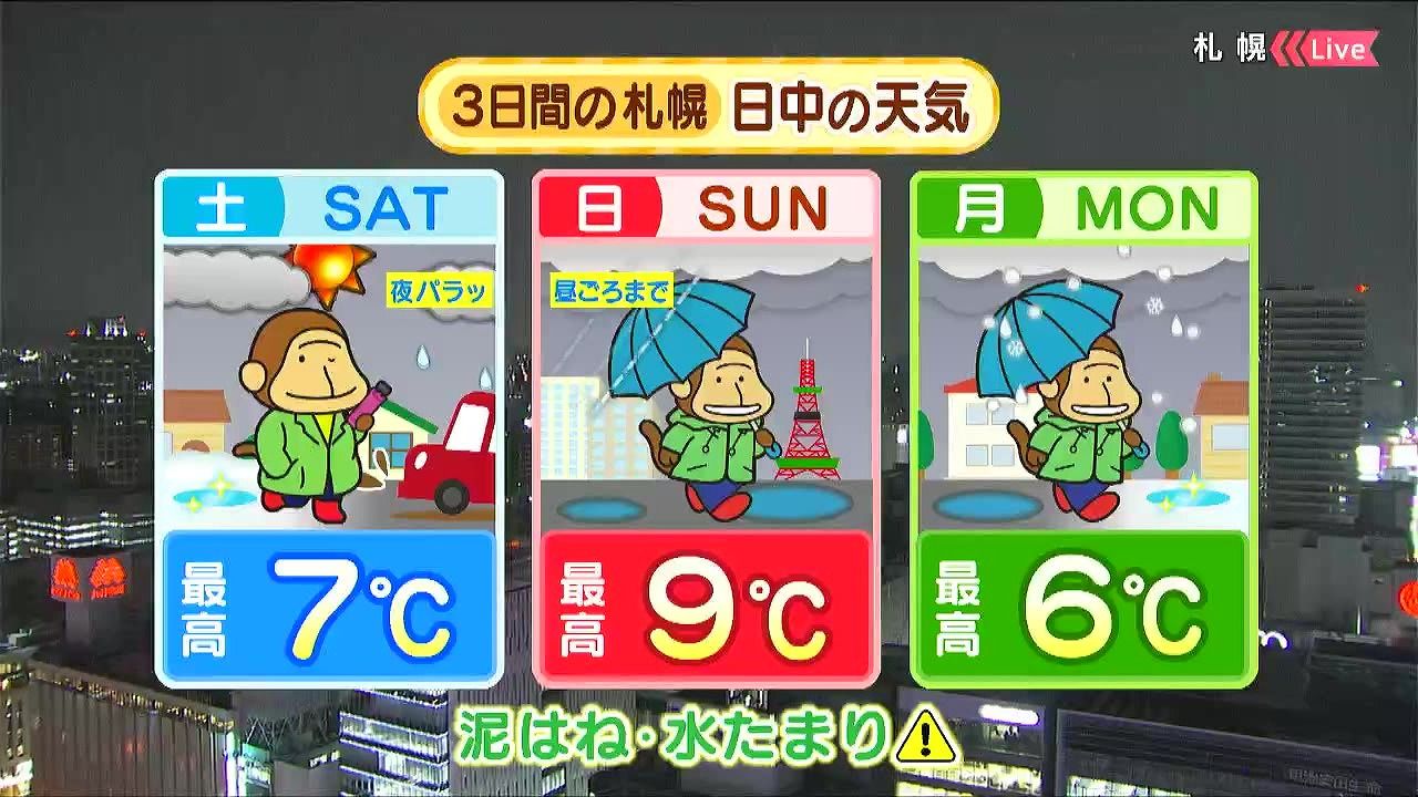 3日間の札幌です! 土日月の天気をもんすけでお伝えします!