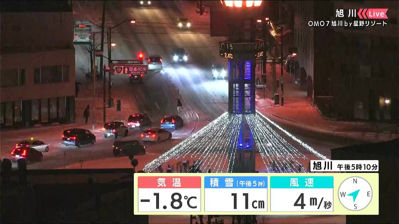 旭川ではイルミネーションイベント「ユキノワアサヒカワ」開催中。冬らしい景色になってます。土日は少し季節が戻って、雪はとけていきそうです。