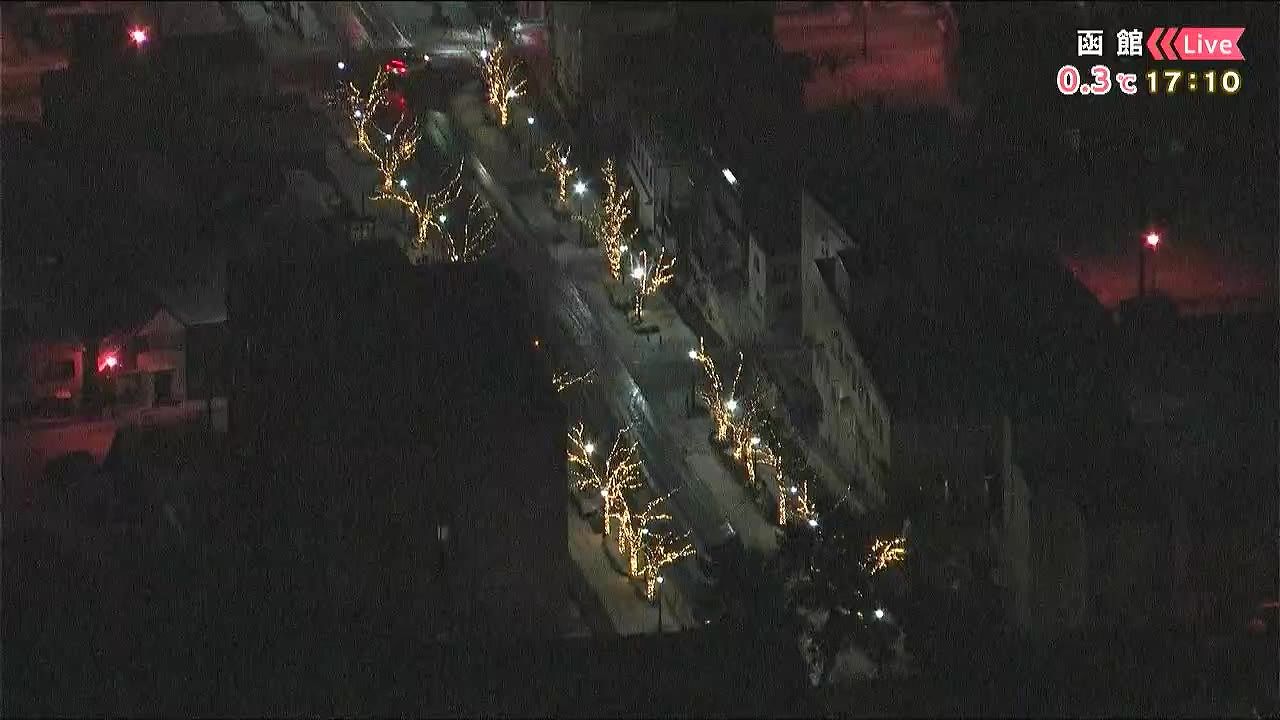 函館の八幡(はちまん)坂のイルミネーション。函館ではツリーはもちろん、五稜郭公園など市内各所でイルミネーションが楽しめます。