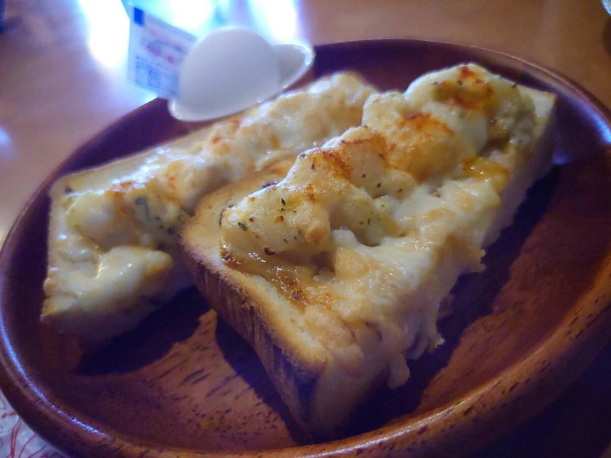 トーストにポテトサラダがたっぷり!香ばしく焼きあがっててイモの食感が良い感じ。